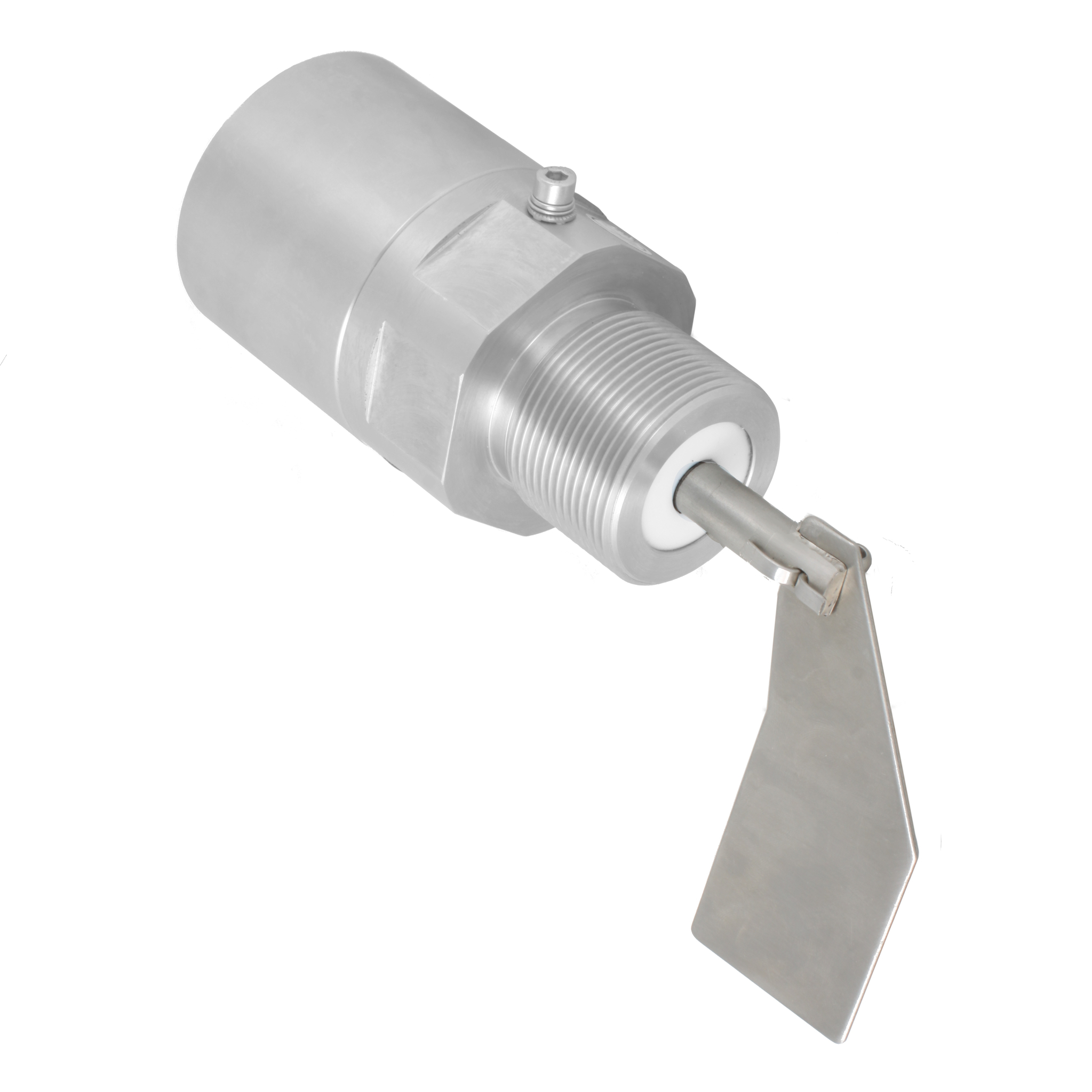 Измерительная лопасть приводится в действие шаговым двигателем. При контакте лопасти с материалом крутящий момент возрастает до полного останова двигателя, выходной сигнал переключается (регистрация уровня материала). При снижении уровня материала лопасть освобождается, двигатель возобновляет вращение, выходной сигнал возвращается в исходное состояние.