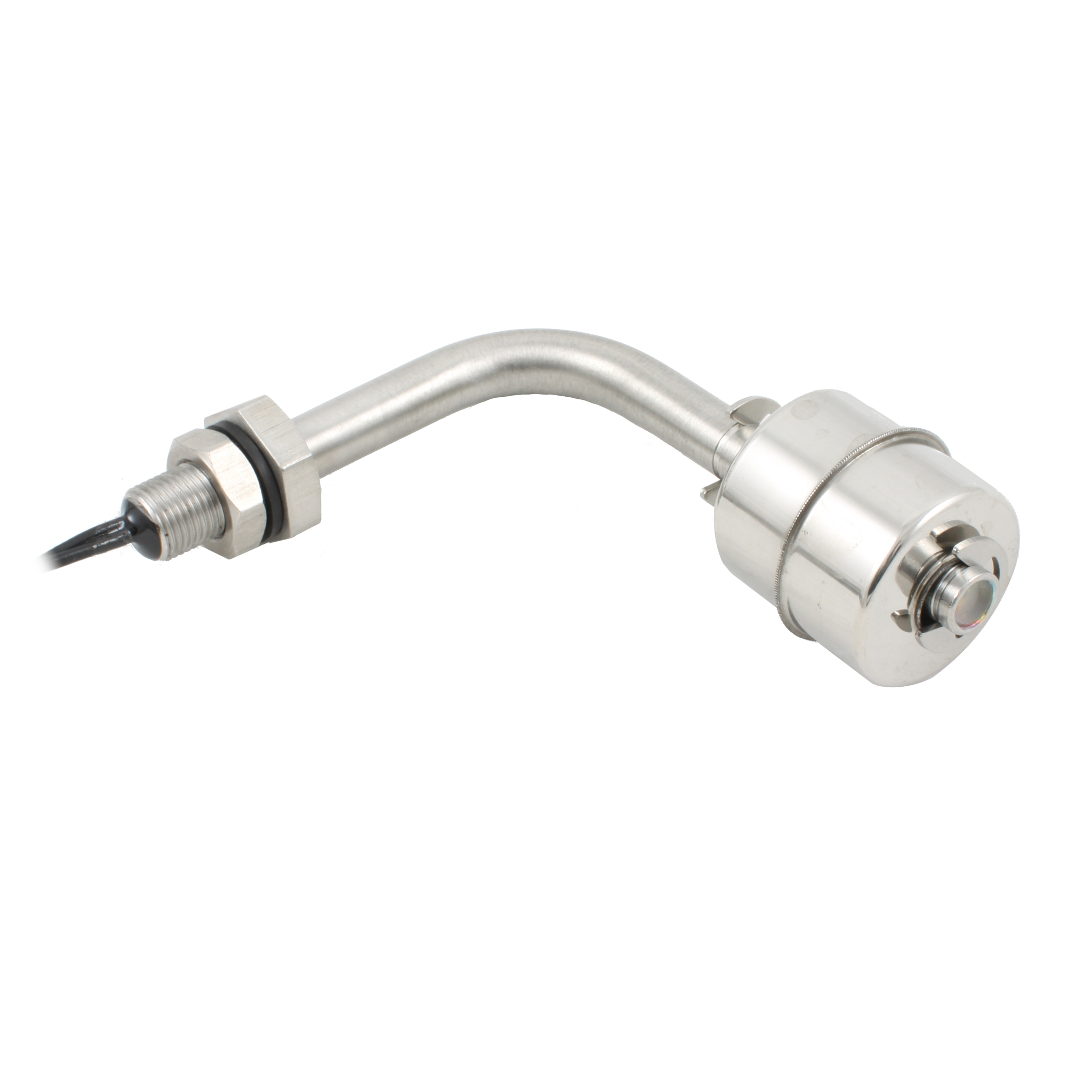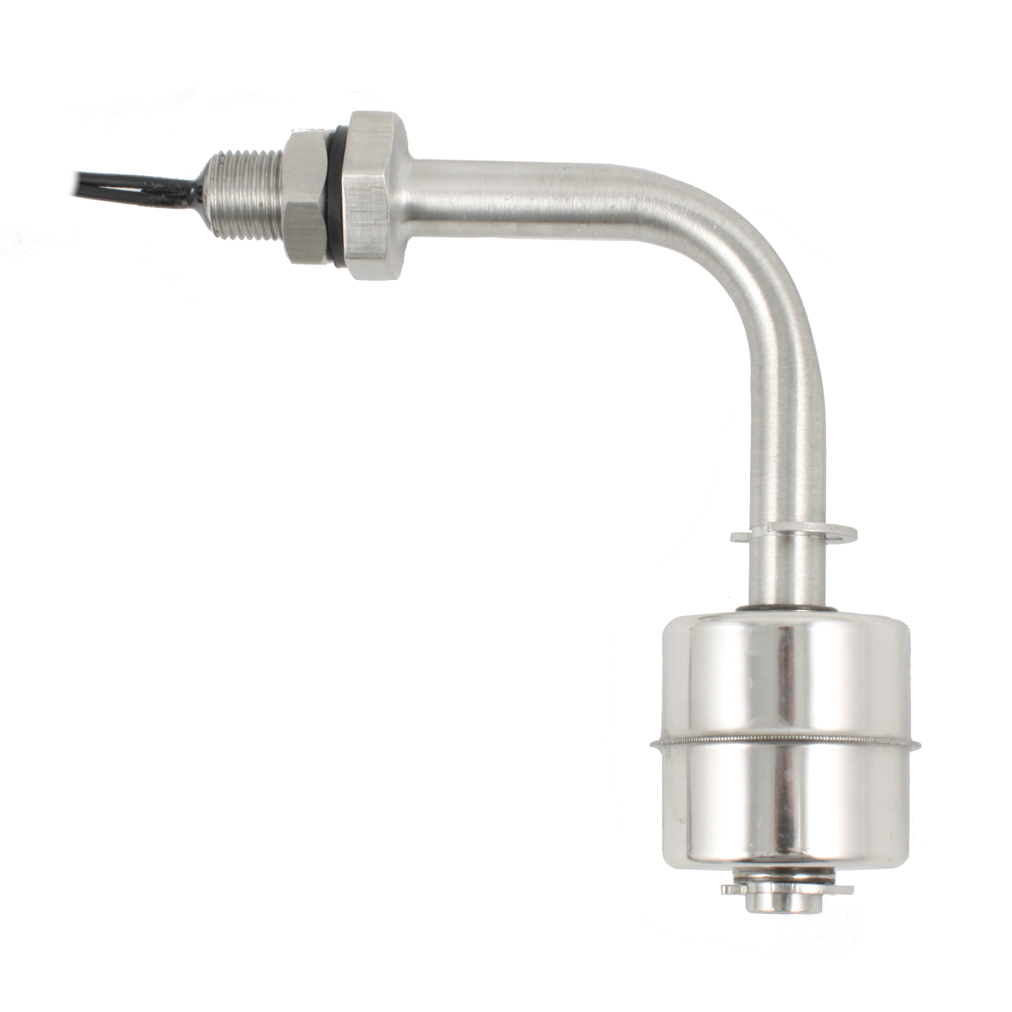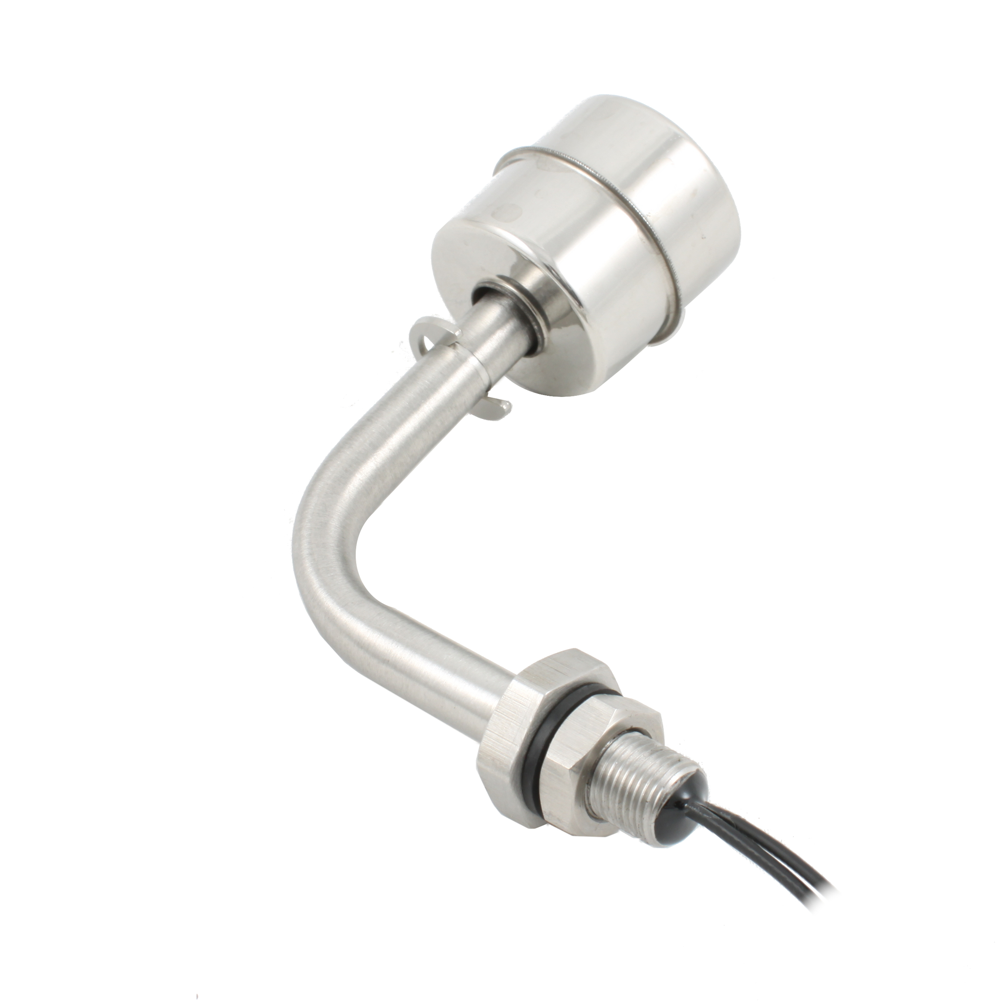 Поплавковый датчик уровня жидкости, Г-образное исполнение, -20 +120 С, соединение- резьба 1/8"PF нерж. сталь, кабель 500 мм, поплавок D=28 мм нерж. сталь.