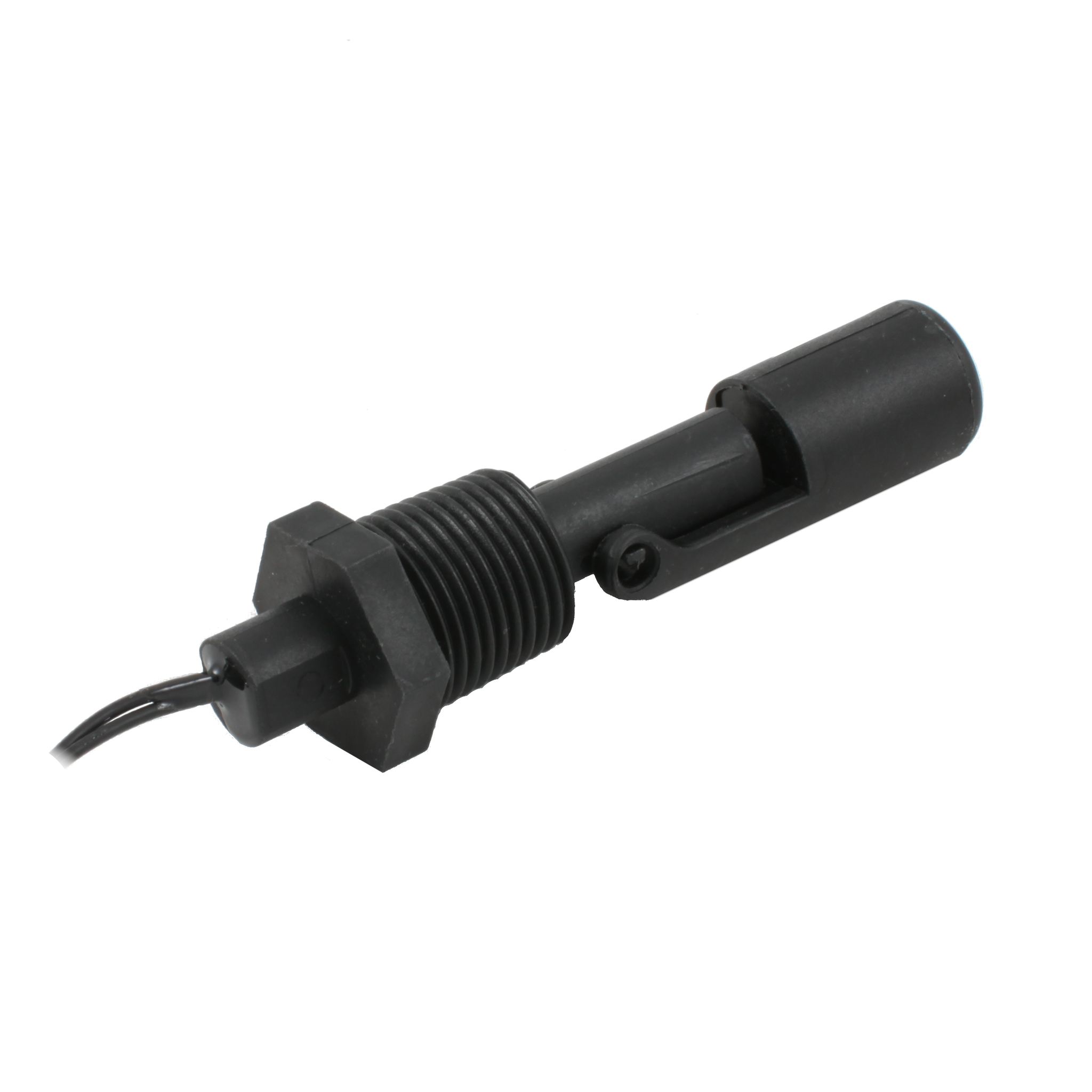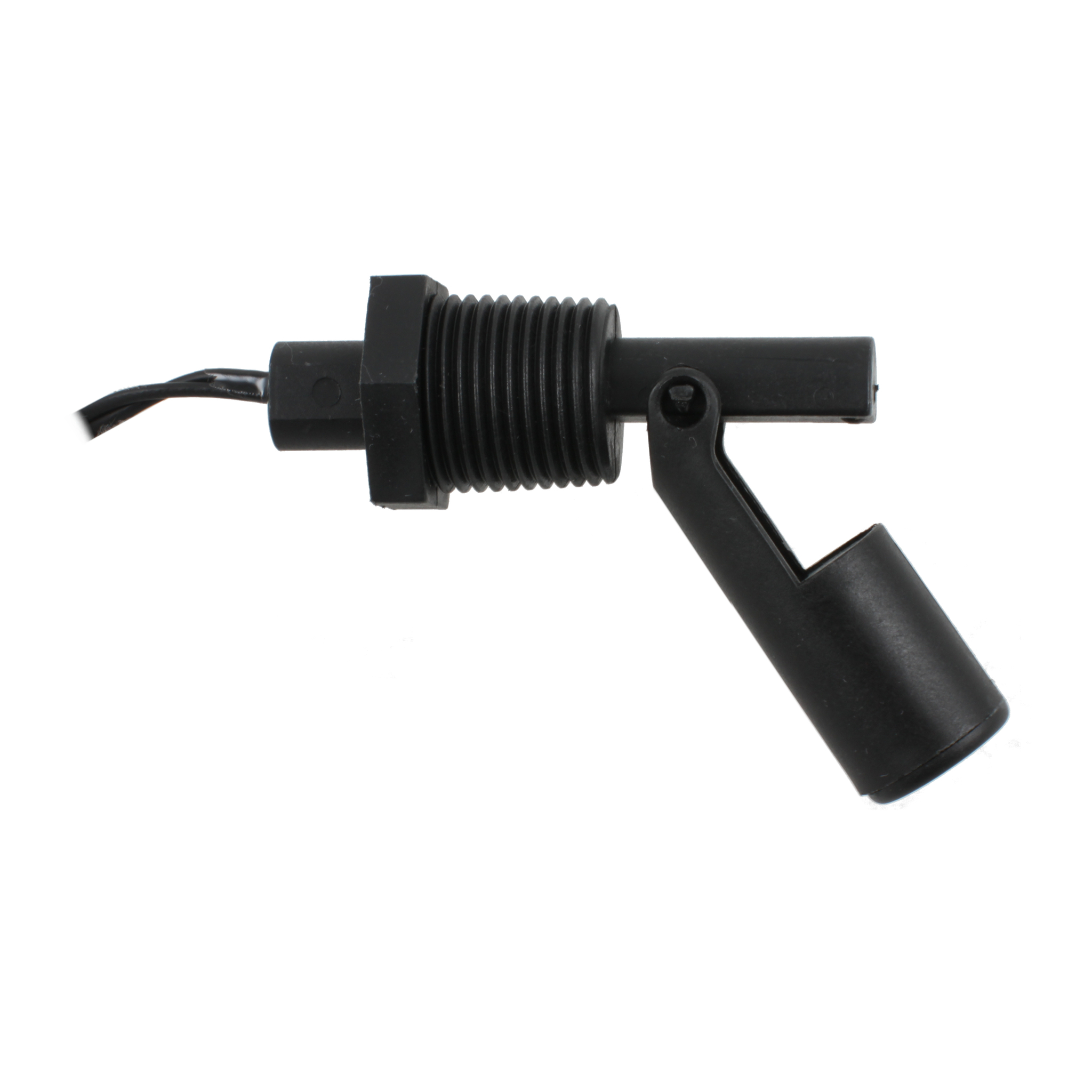 Поплавковый датчик уровня жидкости, горизонтальное исполнение, -20 +80 С, соединение - резьба 1/2"NPT полипропилен, кабель 500 мм, поплавок - полипропилен.