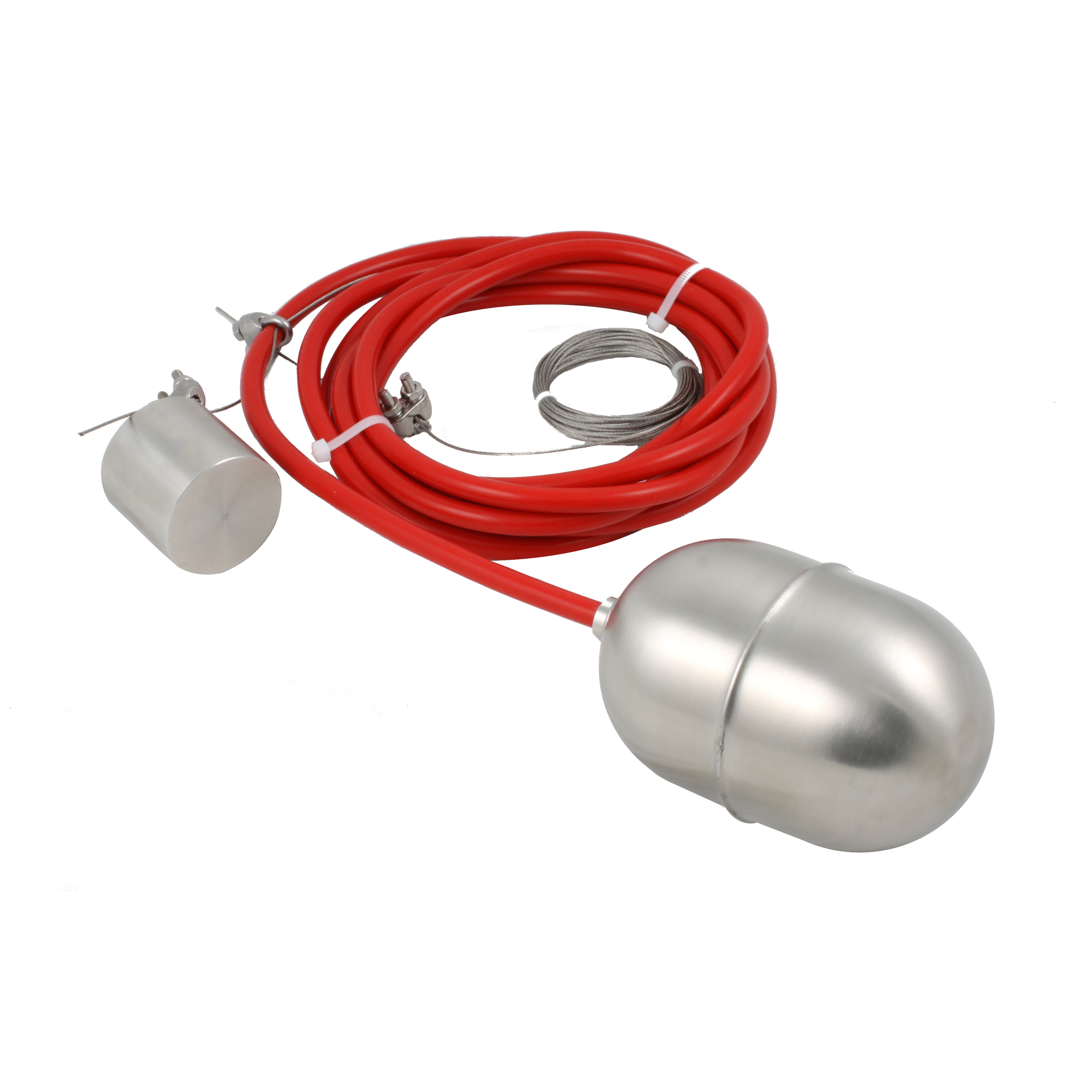 Поплавковый датчик уровня жидкости, исполнение на кабеле 5 м, -10 +180 С, поплавок- нерж. сталь, кабель- силикон.