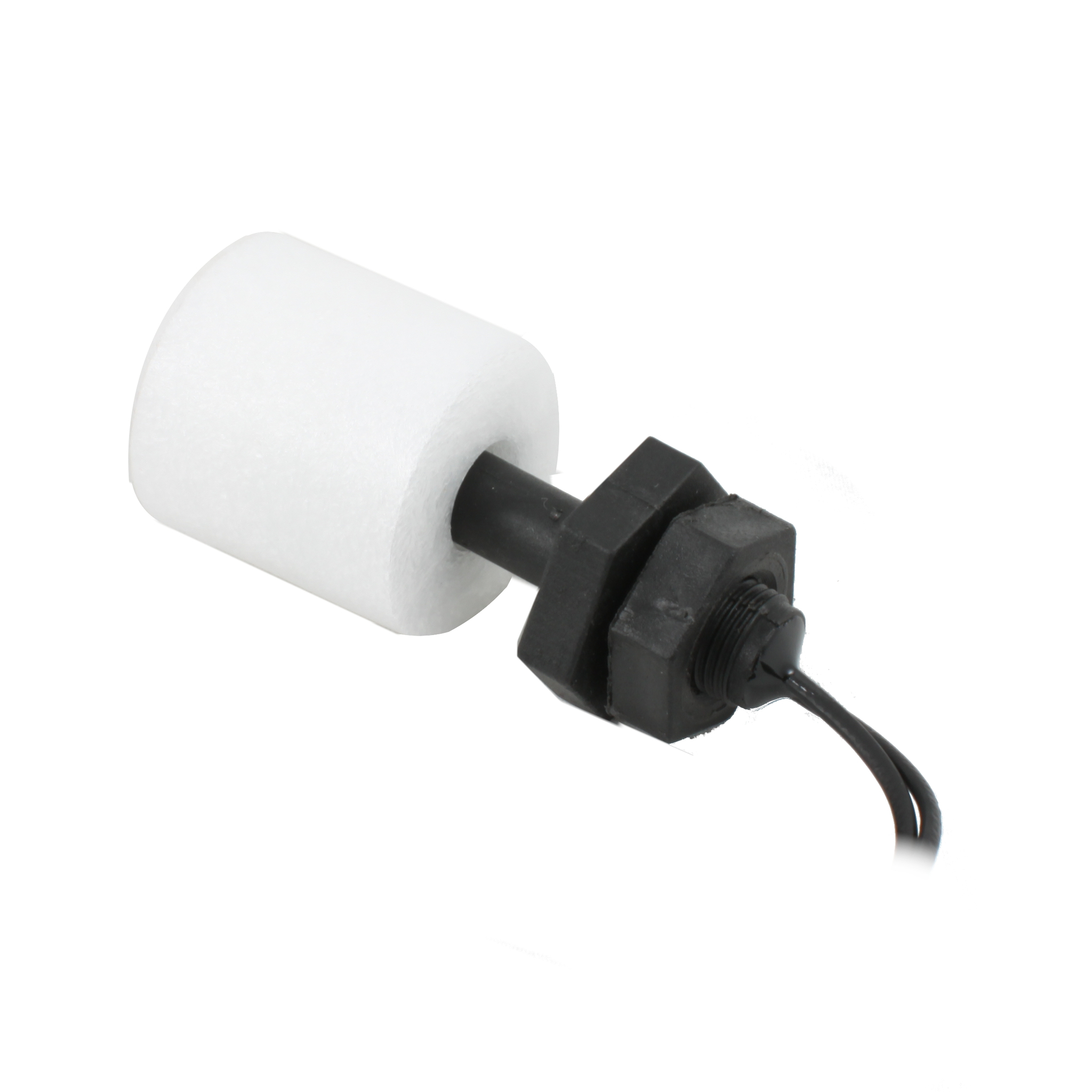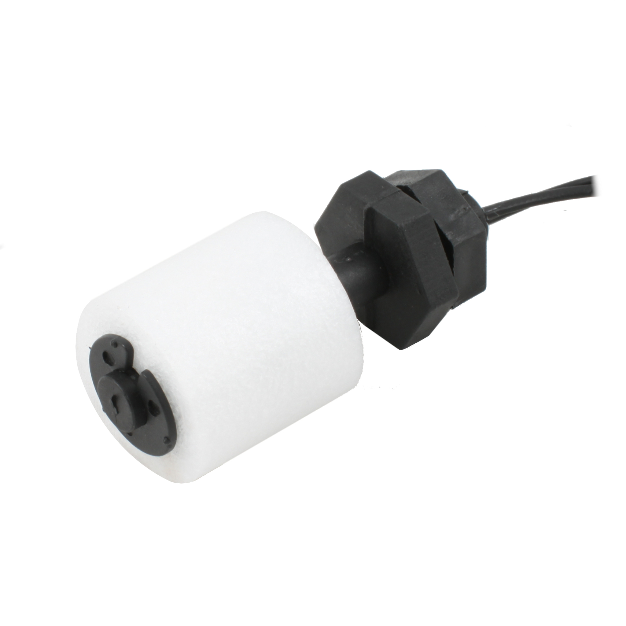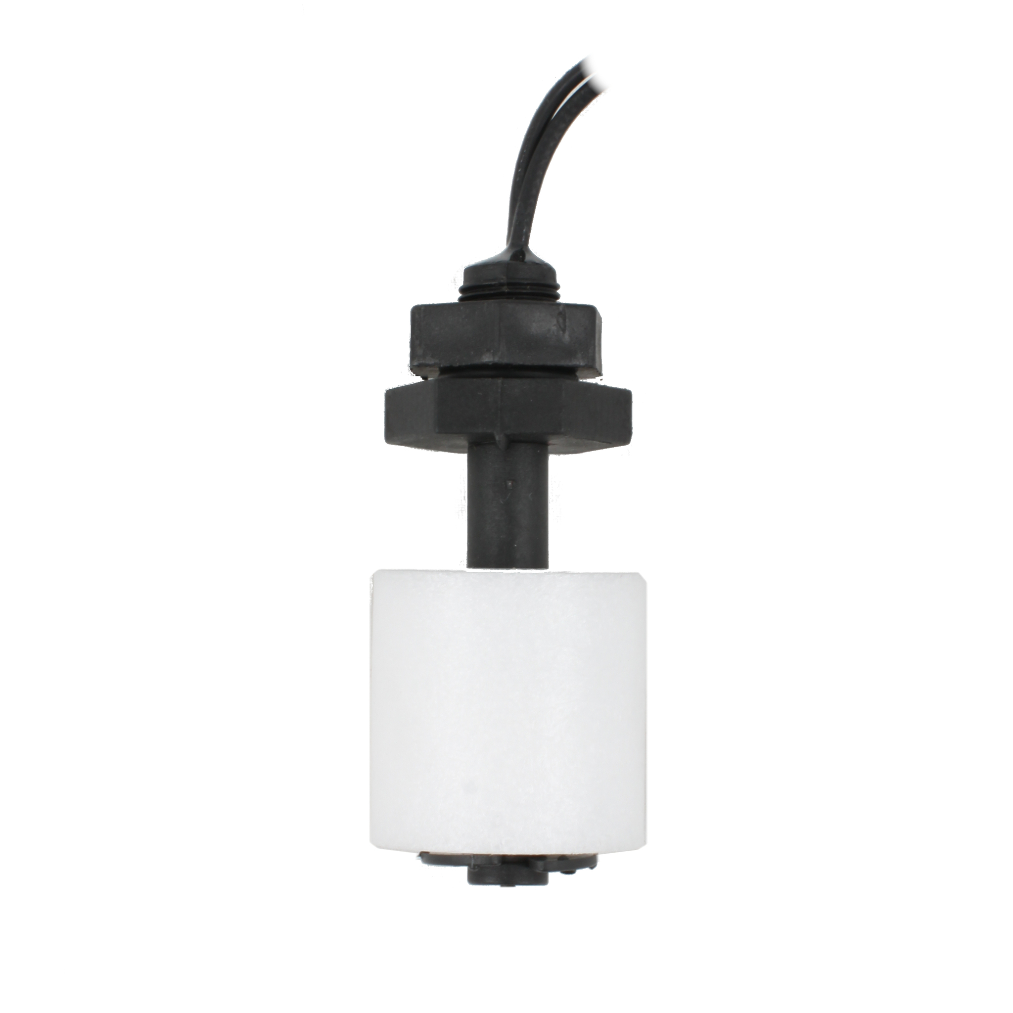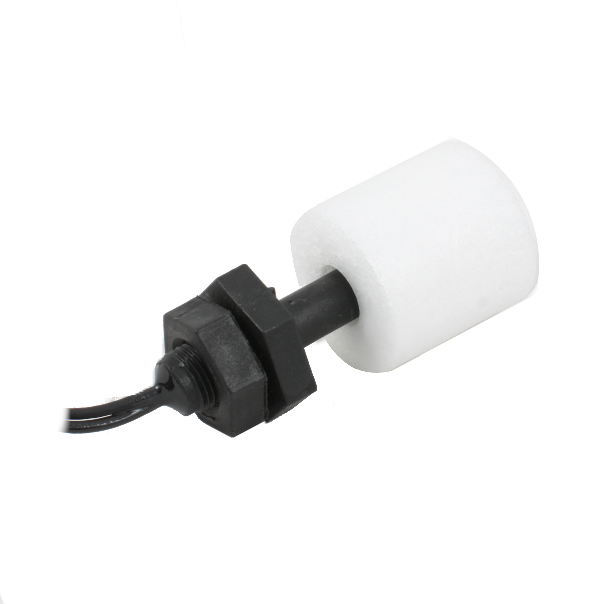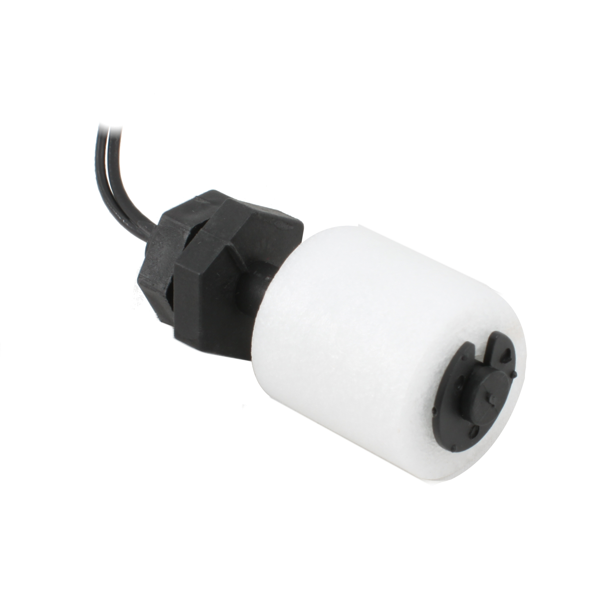 Поплавковый датчик уровня жидкости, вертикальное исполнение, -20 +80 С, соединение - резьба 1/8"PF полипропилен, кабель 500 мм, поплавок D=25 мм полипропилен.