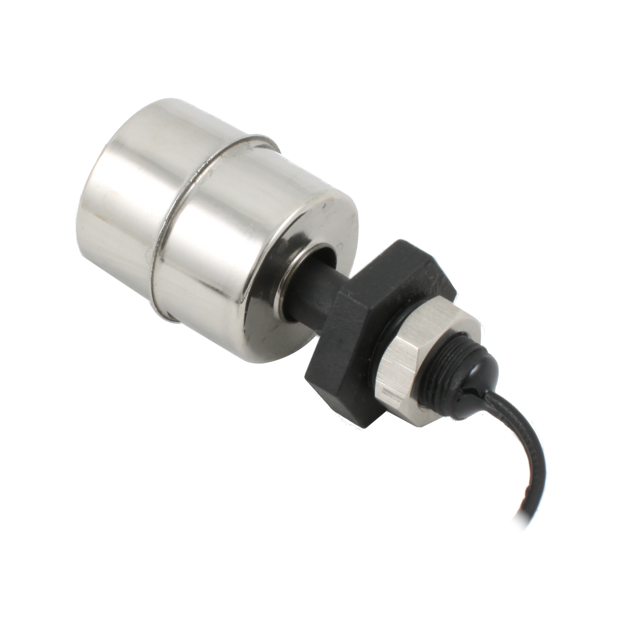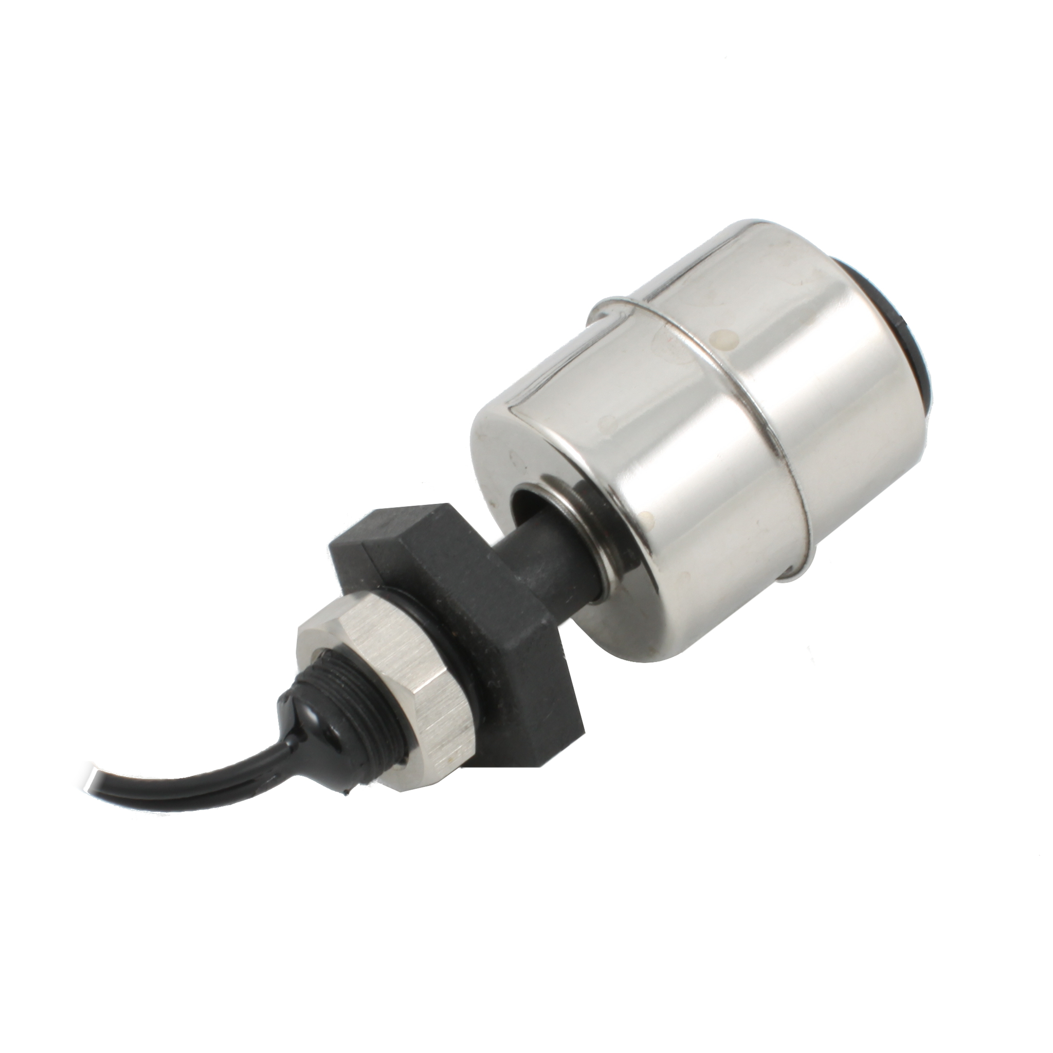 Поплавковый датчик уровня жидкости, вертикальное исполнение, -20 +80 С, соединение- резьба 1/8"PF полипропилен, кабель 500 мм, поплавок D=25 мм нерж. сталь.