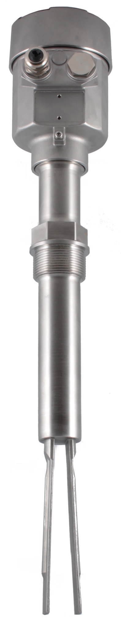 Вибрационный датчик предельного уровня сыпучих материалов в корпусе из нерж. стали, -40 +150 С, Pmax=10 bar, 22-265 VAC - 20-46 VDC, IP 67, чувств. от 10 г/л, соединение- резьба G 1 1/2", нерж. сталь 304, удлинение 300 мм, выход- реле DPDT.