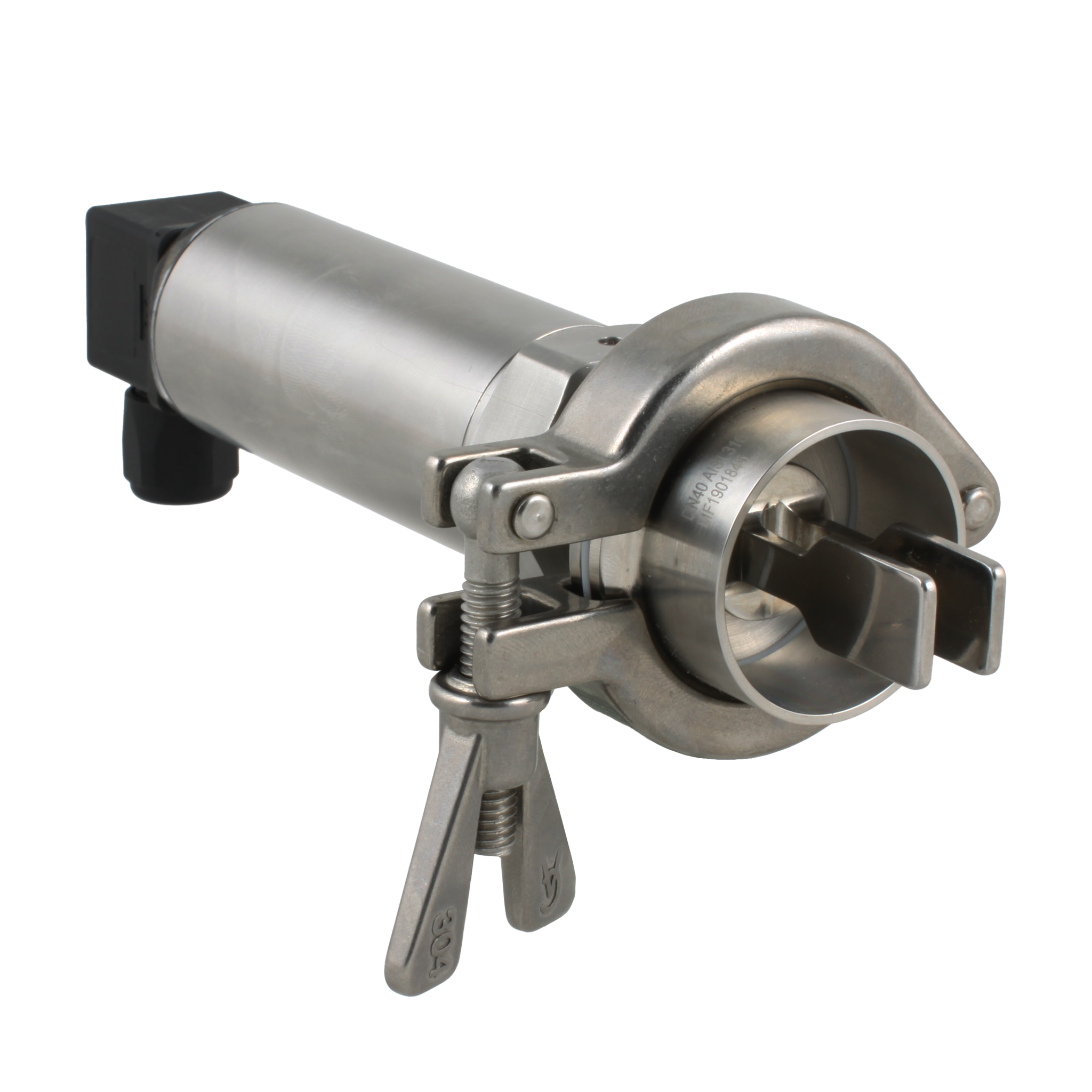 Вибрационный датчик предельного уровня жидкостей, -40 +150°С, Pmax=40 bar, 12 - 55 VDC, IP65, соединение - Clamp DN40, удлинение 40 мм, нерж. сталь 316L, электрополировка зондов, шероховатость ≤ 0,6 мкм, выход PNP/NPN, разъем DIN 43650.